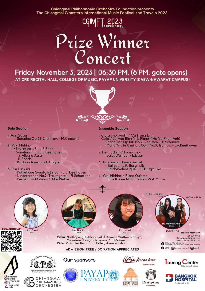 2023年11月03 Prise Winer Concert チェンマイヒナステラ国際音楽祭 2023 03 Nov. 2023 Chiangmai Ginastera International Music Festival Prise Winer Concert